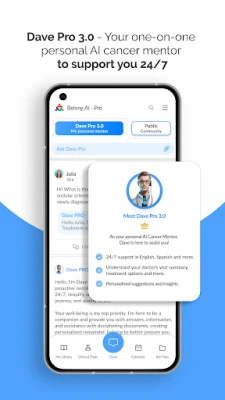 Möt **Dave**, din personliga, AI-drivna cancermentor. Denna interaktiva assistent är skapad för att ge dig realtidsstöd och har redan vunnit förtroende och uppskattning från tusentals patienter och deras anhöriga. Med **Dave** vid din sida får du empatiska svar och anpassad vägledning, tillgänglig dygnet runt, för att svara på dina frågor och dämpa dina funderingar, precis när du behöver det som mest.