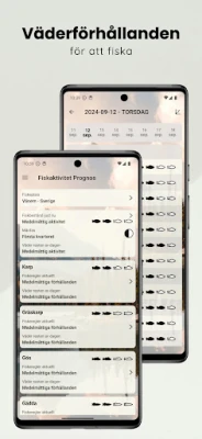 Denna app är designad för att passa just dig, med ett anpassningsbart utseende som låter dig välja mellan ett klassiskt eller modernt gränssnitt. För att ta din fiskeupplevelse till nästa nivå erbjuds ett premiumabonnemang. Detta låser upp utökade tim- och dagsprognoser för upp till 15 dagar, obegränsat antal sparade vattenområden och solunära prognoser för de kommande tre månaderna. Premiumåtkomst ger dig även detaljerade barometerprognoser för två dygn framåt, fiskeregler och insikter om fiskproduktivitet, samt fullständig tillgång till den avancerade kartan och fiskedagboken. Vi strävar efter att förse dig med de bästa förutsättningarna, men kom ihåg att våra prognoser är verktyg för att öka dina chanser till en framgångsrik fångst – de är ingen garanti. Applikationen stödjer alla specificerade sötvattensarter, oavsett lokal förekomst.