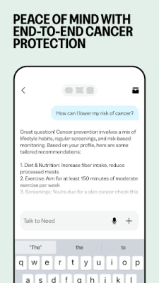 Redan när du är frisk förser Need dig med vetenskapligt grundade tips för en livsstil som bidrar till att sänka din cancerrisk. Du får tillgång till en personligt anpassad screeningplan med smarta påminnelser för att säkerställa tidig upptäckt. Har du frågor eller funderingar finns Need tillgänglig med omedelbara svar och insikter. Skulle du oroa dig för potentiella symptom, står vårt team av erfarna Need Navigators redo att vägleda dig med omsorg och expertis, varje steg på vägen.