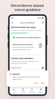 Outcomes4Me Cancer Care ger dig verktygen att ta kontroll över din cancerresa. Få tillgång till begriplig och evidensbaserad information, personliga behandlingsvägar och relevanta kliniska prövningar. Appen erbjuder anpassade nyheter och innehåll, samt funktioner för symtomhantering, för att ge dig ett omfattande stöd genom din diagnos.