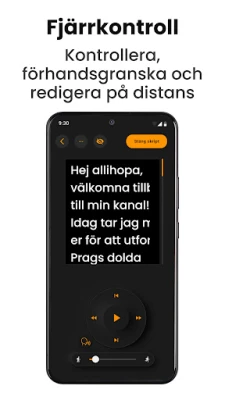 Teleprompter ger dig fullständig kontroll över ditt innehåll och din presentation. Skapa, redigera och organisera obegränsat antal manus direkt på din enhet, eller importera enkelt befintliga texter från molnet i format som Txt, Word och PDF. För att integrera manus med visuellt innehåll kan du smidigt spela in video direkt i appen, och anpassa uppspelningshastighet samt ställa in exakt tidsåtgång för att matcha din rytm. Appen erbjuder även flexibla speglingsalternativ – både vertikalt och horisontellt – samt anpassningsbara teckenstorlekar, vilket garanterar en optimal läsupplevelse i alla situationer. Fjärrstyrning är problemfri; använd ditt Bluetooth-tangentbord eller vår smidiga Wear OS-kompanjonapp för att navigera genom ditt manus med enkelhet.